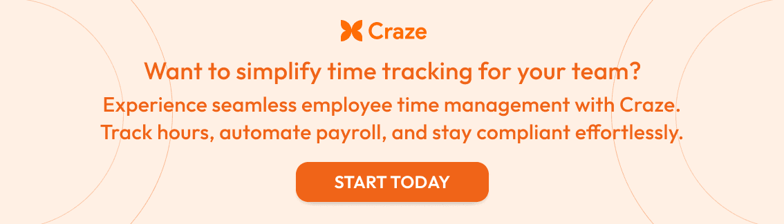 Looking to simplify your team’s time tracking and HR processes? Get started with Craze today and manage your workforce effortlessly. Book a Demo today.