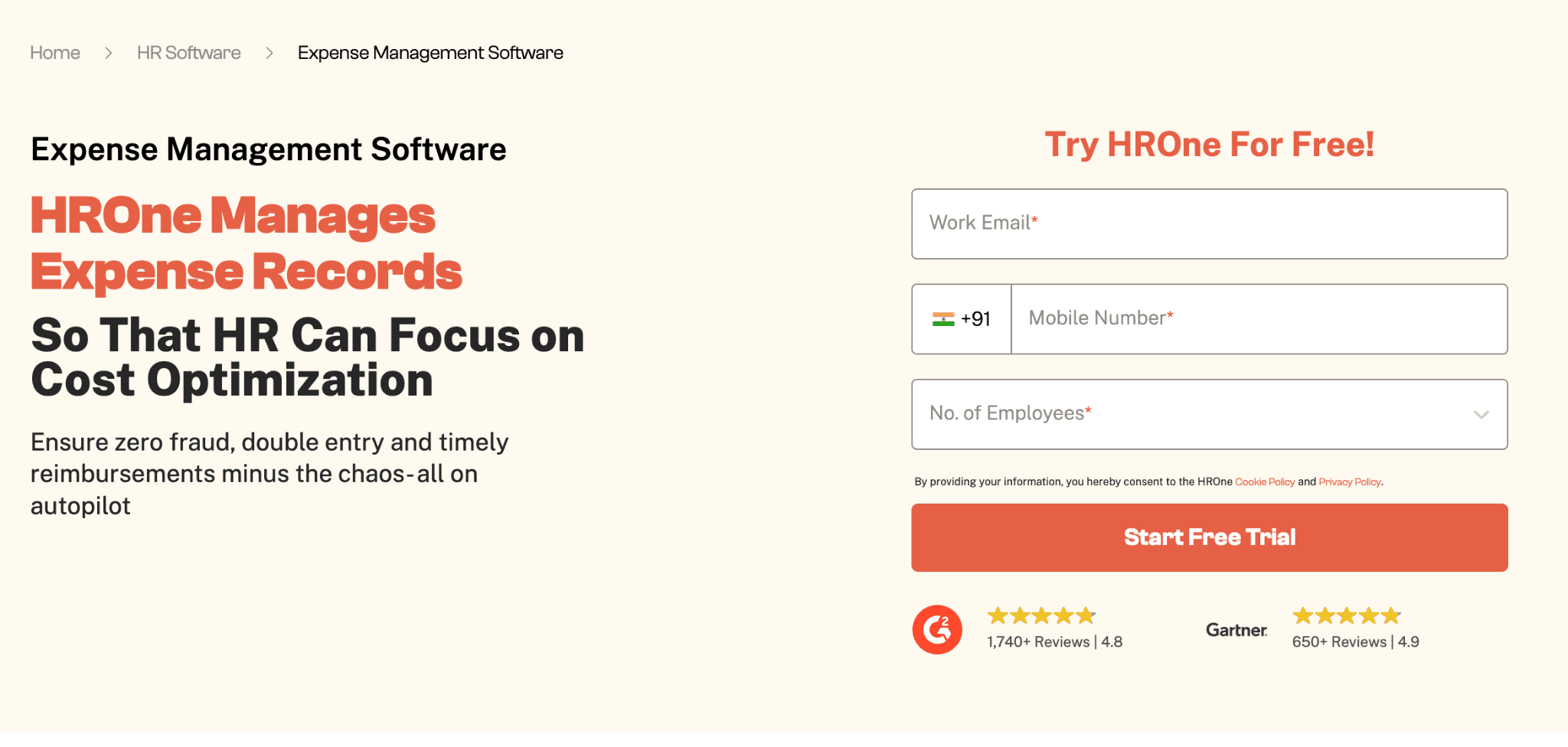 HROne is an all-in-one HR and payroll platform that also includes expense and reimbursement management. It suits Indian businesses that want to automate claims, approvals, and reimbursements with policy controls and GST-friendly compliance. Its biggest advantage is that approved reimbursements can sync into payroll for on-time payouts.