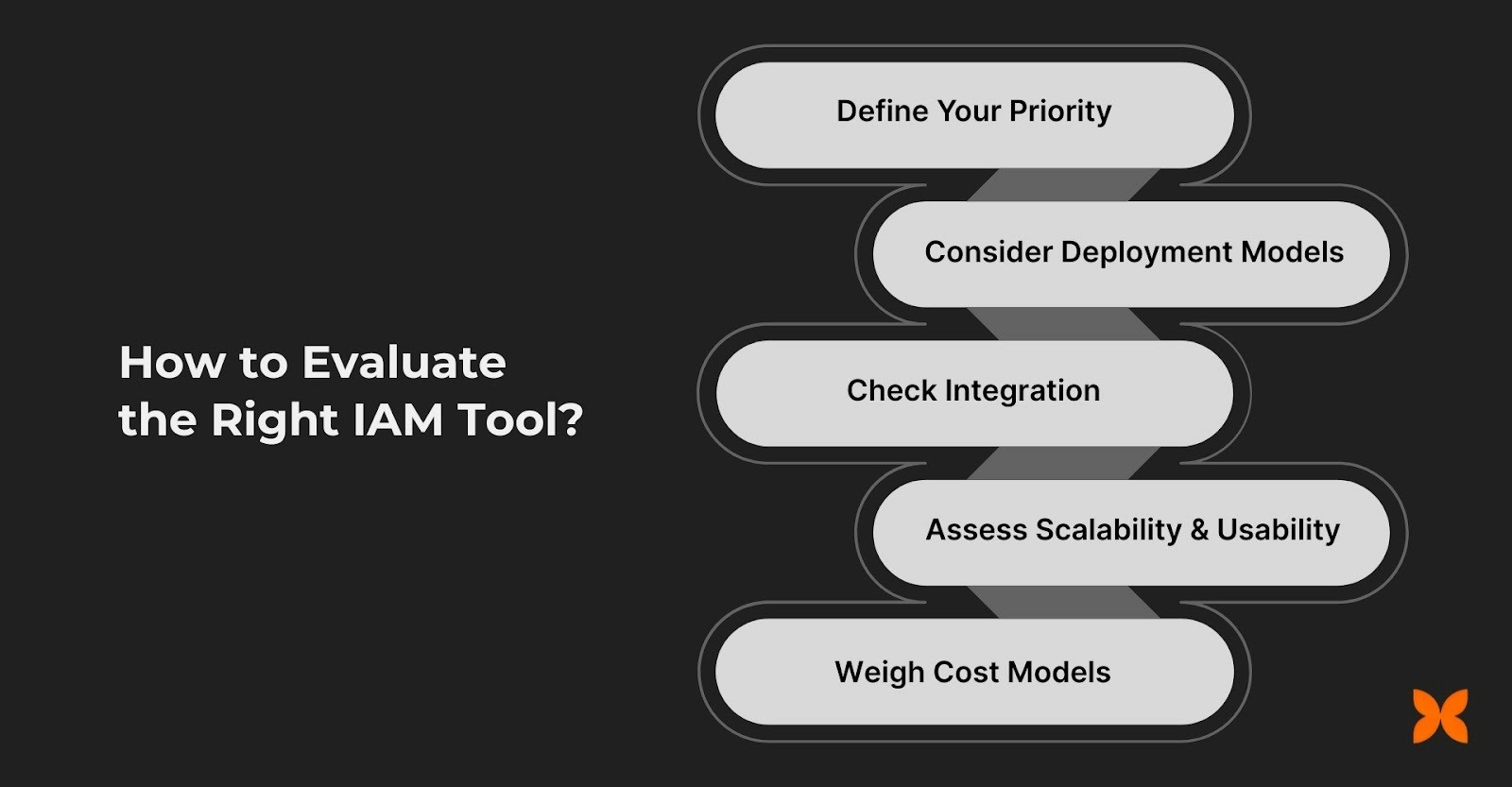 Choosing the right IAM tools helps businesses evaluate tools based on priorities such as workforce identity, privileged access, deployment model (cloud, on-prem, hybrid), integration with HR/compliance systems, scalability, and cost-effectiveness.